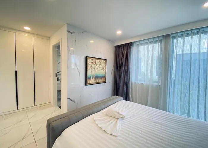 Den här villan med 4 badrum ligger inom 45 km från Pattaya (Chonburi) flygplats och inom 6 km från kulturella sevärdheter som Bottle Art Museum. Villan ligger cirka 15 minuter med bil från Mini Siam Pattaya Thailand, och Pattayas elefantby ligger ungefär 20 minuters bilresa bort. Palm Springs Pool Villa C8 med 4 sovrum ligger inom 2 km från Undervattensvärlden i Pattaya.
